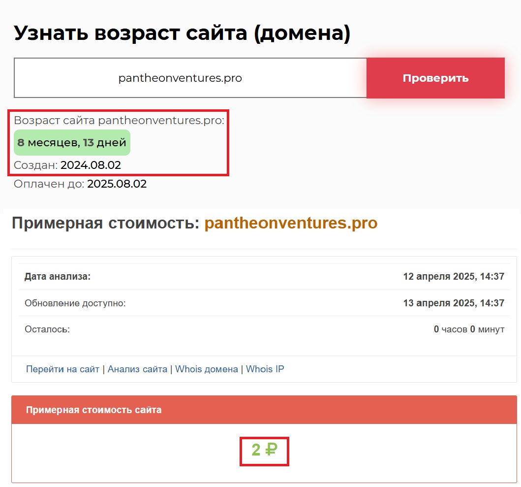 Домен был зарегистрирован 2 августа 2024 года. То есть, на момент анализа проекту всего 8 месяцев и 13 дней. Это слишком короткий срок для компании, которая якобы имеет «опыт на международных рынках». К тому же, стоимость ресурса — два рубля. Не две сотни, не две тысячи, не двадцать тысяч, а именно два рубля. Разве может что-то серьезное начинаться с таких инвестиций? Очевидно, что нет.