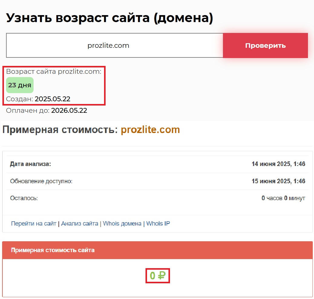 Еще один важный момент — отсутствие лицензии и регистрации. Prozlite прячется от реального контроля и не несет никакой ответственности за потерю ваших денег. В пользовательском соглашении прямо говорится, что вся ответственность ложится на клиента, даже если на сайте случился технический сбой. Разве это честно? Вряд ли. Мошенники создали свой веб-ресурс 23 дня назад, то есть 22 мая 2025 года. И, кстати, цена сайта всего ноль рублей — уж слишком дешево для серьезной компании. Контакты? Не смешите, никто не захочет разговаривать с клиентами напрямую. Эти аферисты используют форму обратной связи, берут ваши данные и потом звонят с одноразовых номеров.