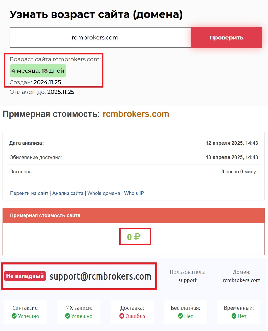 Теперь обратим внимание на технические детали. Сайт существует всего 4 месяца и 18 дней. То есть создан 25 ноября 2024 года. Звучит не слишком солидно для компании, которая позиционирует себя как надежный партнер. А теперь добавим сюда стоимость сайта — 0 рублей. Вы серьезно верите, что проект с таким «бюджетом» способен выплачивать крупные доходы инвесторам?