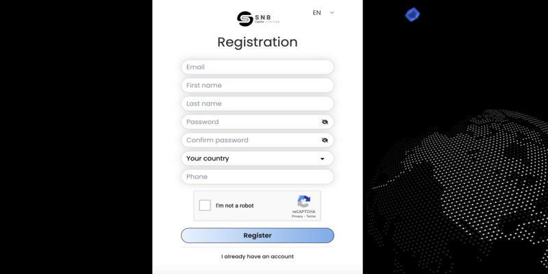 Веб–ресурс snb-capital.net построен на стандартном шаблоне, который использовался уже много раз. Если вы поищите информацию о лжеброкерах, то обнаружите сайты с аналогичным дизайном и функционалом. Все дело в том, что создатель у них один и тот же и работает он просто. Афера взяла макет, изменила название, применила другой цветовой стиль к странице и выставила свое творение в сеть.