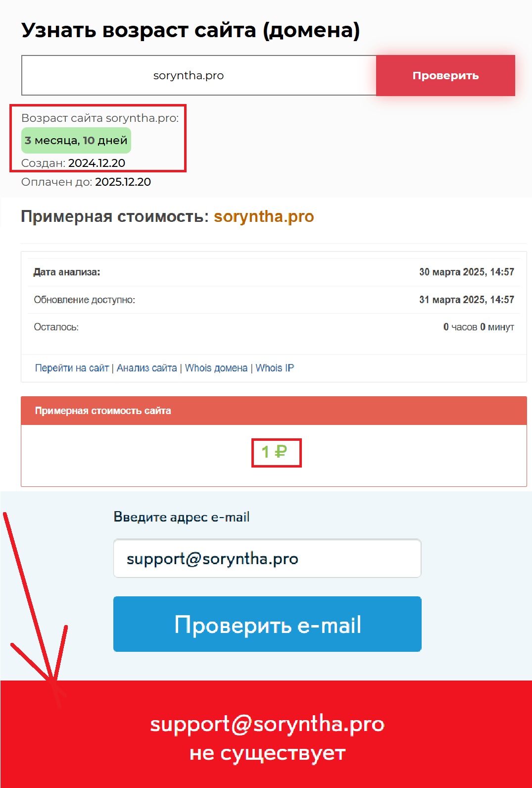 Что еще настораживает? Ну, например, заявление о многолетнем опыте. Компания якобы давно на рынке, имеет профессионалов, которые помогут вам приумножить капитал. Но стоит копнуть глубже — и реальность оказывается совсем иной. Доменные данные показывают, что сайт появился 20 декабря 2024 года. Проекту всего 3 месяца и 10 дней — какой уж тут опыт? Это крошечный срок для легальной компании, но вполне стандартный для мошеннических схем, которые живут недолго, а затем просто исчезают.