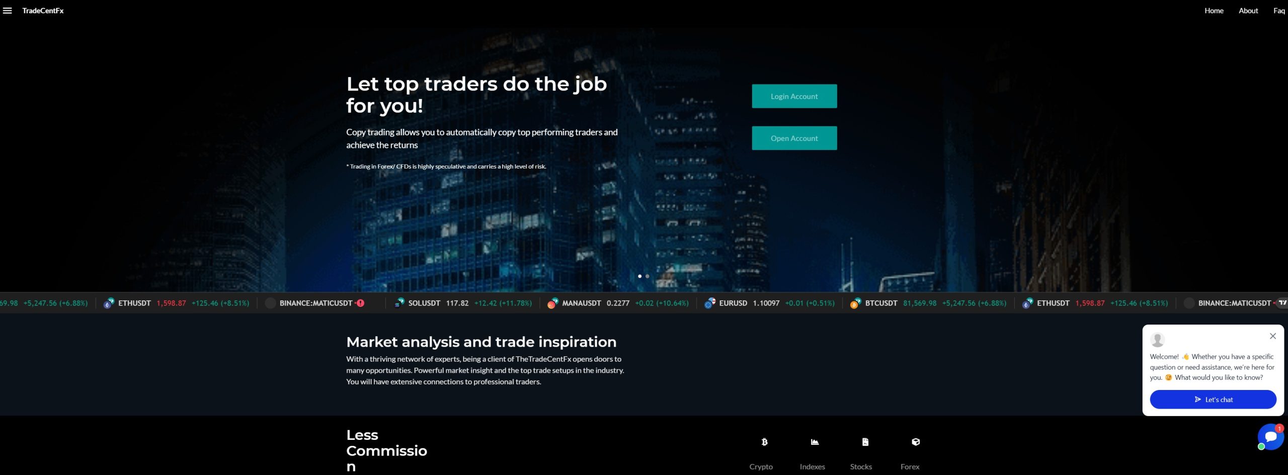Давайте начнем с сайта. Открываешь страницу tradecentfx.com и ловишь дежавю. Где-то это уже было. Где-то это уже видели. Унылый интерфейс, одинаковые блоки, копипаст текста, неработающие кнопки и страницы, где просто… ничего нет. Чистый шаблон, никакой индивидуальности, даже не попытались создать иллюзию настоящей работы. Выглядит это все так, будто сделали на скорую руку, за день-другой — просто чтобы было.