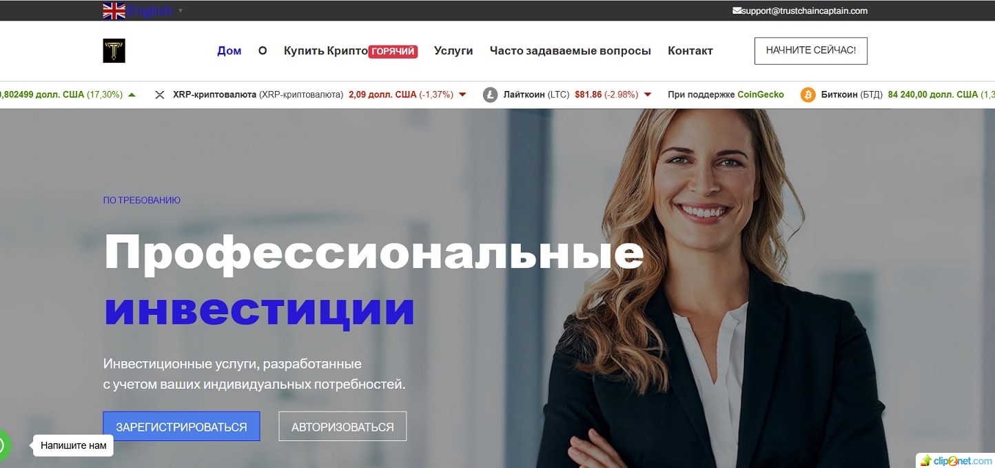 Бесплатный сыр, как известно, бывает только в мышеловке, и Trustchaincaptain — яркий тому пример. Достаточно взглянуть на их сайт trustchaincaptain.com, чтобы насторожиться. Все сделано наспех, без малейших признаков серьезной компании. Некоторые вкладки попросту не работают, кнопки для перехода в соцсети ведут в никуда, а сам интерфейс — банальный шаблон, который можно купить за копейки. Так разве выглядит платформа, которая якобы приносит людям сотни тысяч рублей? Да и сам «торговый терминал» — не более чем картинка.