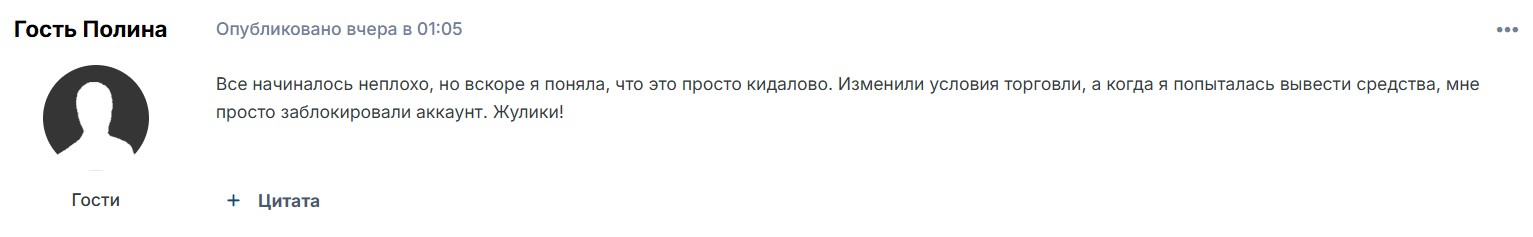 “Я слышала о фальшивых брокерах и всегда думала что никогда бы не повелась на такой откровенный обман! Как видите, я ошибалась. Лохотрон WSN Capital Finance Limited украл у меня 50 тысяч евро и теперь нагло игнорируют любые вызовы. Буду искать возврат средств, чтобы вернуть хоть какую-то часть”