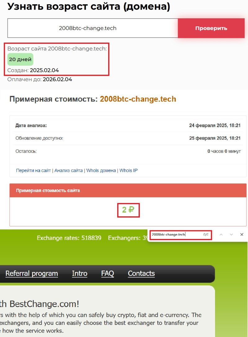 Подобная схема обмана встречается часто: мошенники не утруждаются в создании чего-то нового, ведь их цель — не развитие проекта, а банальная кража денег у наивных пользователей. Сайт существует всего 20 дней, что доказывает проверка при помощи специального сервиса Whois, а стоимость домена по данным Seolik составляет два рубля. Очевидно, что серьезные обменники не могут работать в таких условиях.