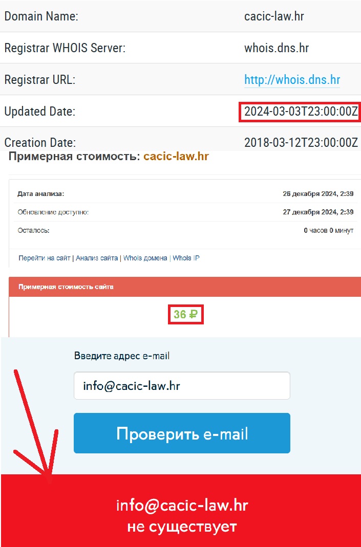 Из контактной информации есть только фейковая электронная почта info@cacic-law.hr, номер телефона +385 23 400 346, а также поддельный адрес офиса Ruđera Boškovića 4/I, 23000 Zadar, Croatia. Мы однозначно не рекомендуем вам заниматься чарджбэком с конторой Cacic Law.