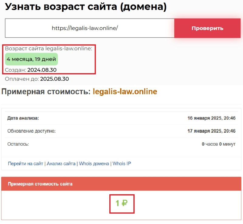 Нам обещают многолетний опыт работы на международном рынке, но при этом площадка появилась в сети 4 месяца и 19 дней назад, то есть 30 августа 2024 года. Это крайне маленький срок для легального финансового посредника. Стоимость этой примитивной конторы составляет один рубль. Что тут сказать, о каком вообще сотрудничестве с профессиональными юристами идет речь.