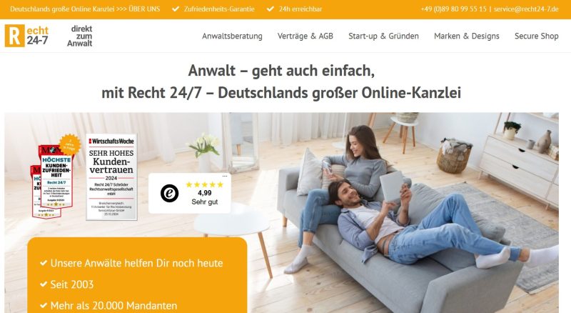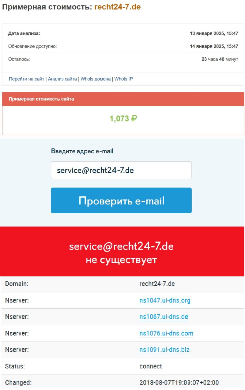 В качестве контактной информации используется электронная почта service@recht24-7.de, а также номер телефона +498980995515. Проблема только в том, что оба эти пункта фейковые, поговорить с представителями лжеюриста не получится.