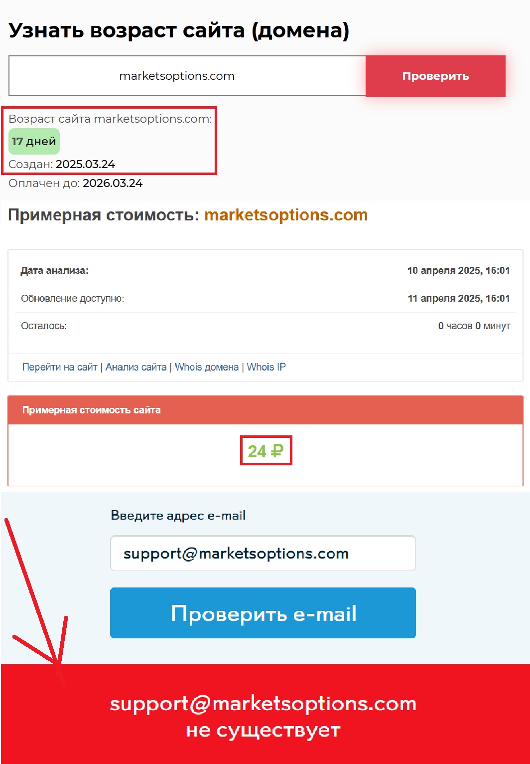 А ведь есть еще и другой нюанс — домен этой «платформы» появился в сети буквально недавно. Проекту от силы 17 дней. Скажите, какой серьезный брокер появляется так быстро, без истории, без команды, без репутации? Ответ, увы, очевиден. Более того, когда узнаешь, что стоимость сайта — 24 рубля… тут уже хочется не возмущаться, а просто развести руками. Настоящая компания так не работает. Это слишком несерьезно.