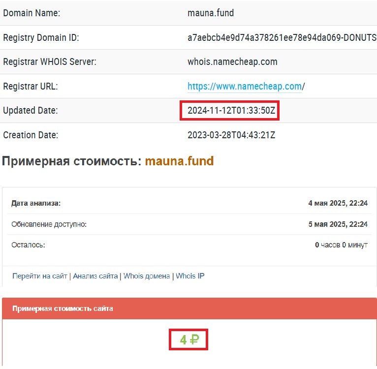 А теперь, как говорится, немного фактов. Сам сайт — если вы вдруг решите проверить — стоит всего… четыре рубля. Это не метафора. И вот скажите, вы реально думаете, что серьезная финансовая структура станет экономить на самом фундаментальном? Настоящие компании тратят десятки тысяч на инфраструктуру, безопасность, сертификацию, техподдержку. Кстати, мы посмотрели и на дату регистрации. Домен зарегистрирован в марте 2023 года, но его реальная деятельность началась лишь 12 ноября 2024 года.
