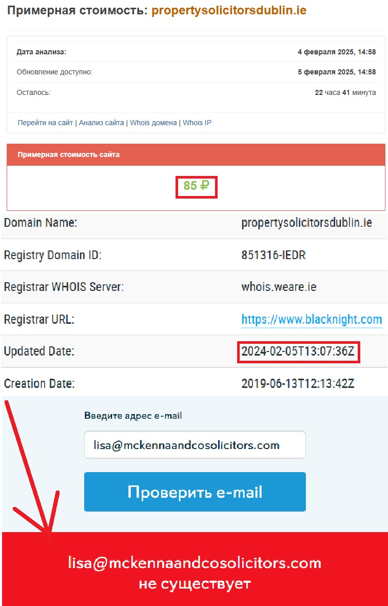 Начать однозначно стоит с примитивного сайта с ужаснейшим дизайном — www.propertysolicitorsdublin.ie. Согласитесь, он не вызывает доверия. И это вполне логично — главную роль в создании платформы отыгрывает шаблон. Тут аферисты просто поменяли название и добавили громкие заявления о высоком уровне предоставляемых услуг. Лжеюрист получает контактные данные от мошеннических инвестиционных платформ, после чего выходит на связь с жертвой и предлагает услуги по чарджбэку.