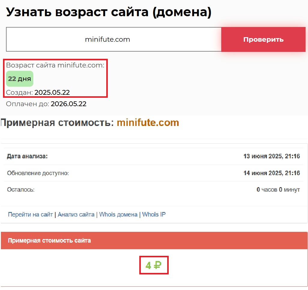 Очень важно смотреть на срок существования сайта и его стоимость — ведь это один из первых индикаторов, который может выдать нелегального посредника. Проверка через независимые сервисы показала, что домен зарегистрирован всего 22 дня назад, что для серьезного брокера просто смешно. И это не все: стоимость площадки — четыре рубля. Да-да, именно столько, что лишь подтверждает тот факт, что перед вами — далеко не серьезный проект, а банальная дешевка. Отзывы о Minifute почти все негативные — никто из клиентов так и не смог вернуть свои вложения.