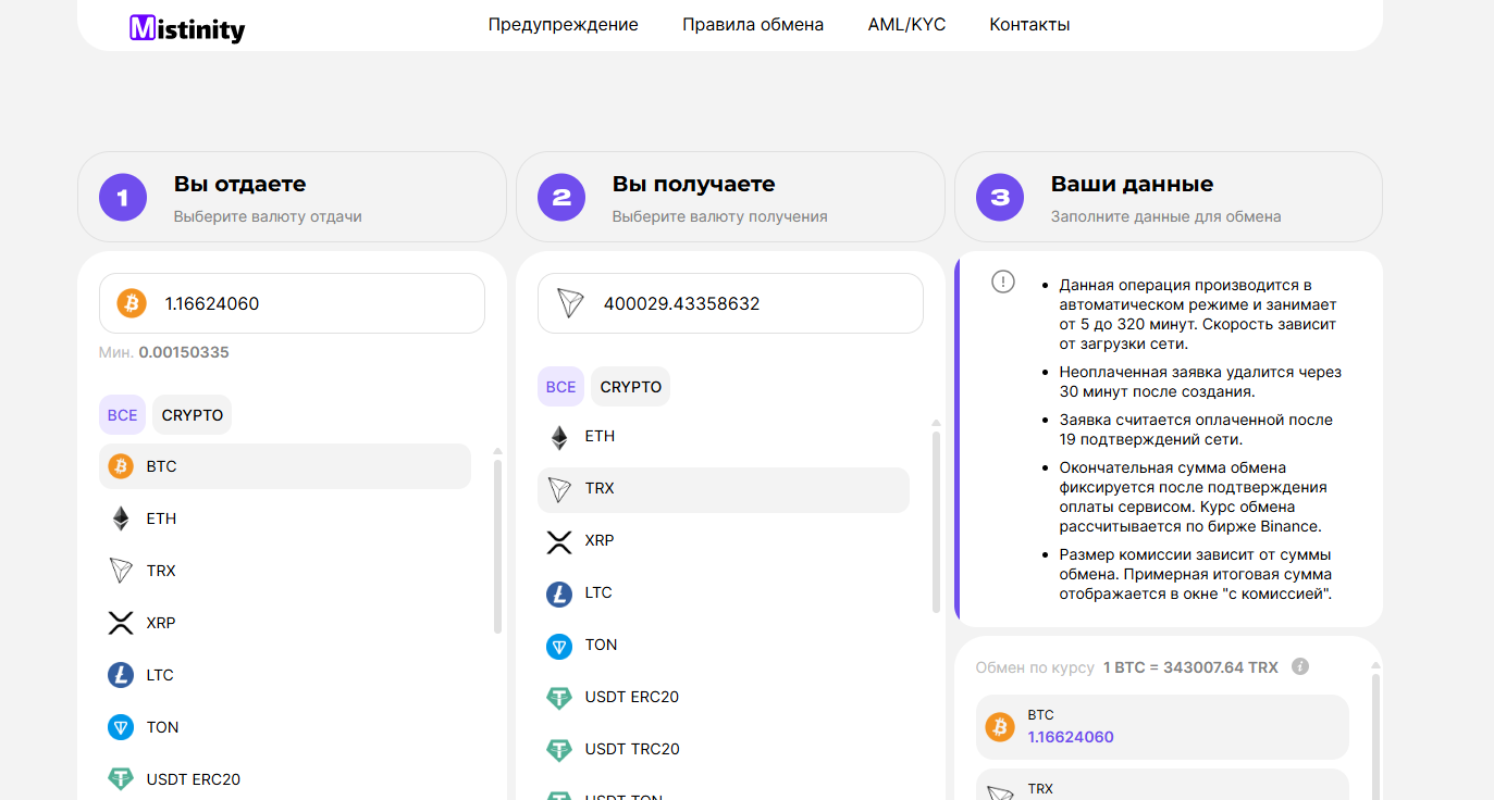 Сегодня тяжело представить криптовалютный мир без ресурсов по обмену цифровой валюты. Однако с подобными проектами нужно быть всегда на чеку, так как среди множества представленных площадок есть немало мошеннических. Создатели таких пространств запускают в Интернете платформы, позиционируя их в качестве надежных и честных. Но на деле за привлекательной обложкой и заманчивыми обещаниями скрывается наглый развод, из-за которого инвесторы теряют немалые суммы. Именно таким может быть результат взаимодействия с фальшивой конторой Mistinity.