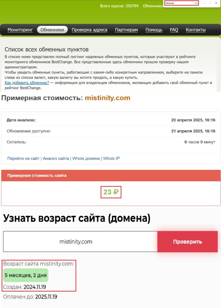 Также предлагаем обратить внимание на тот факт, что Mistinity отсутствует в списках мониторингов. Это свидетельствует о том, что специалисты не могут назвать данный сервис безопасным и честным.