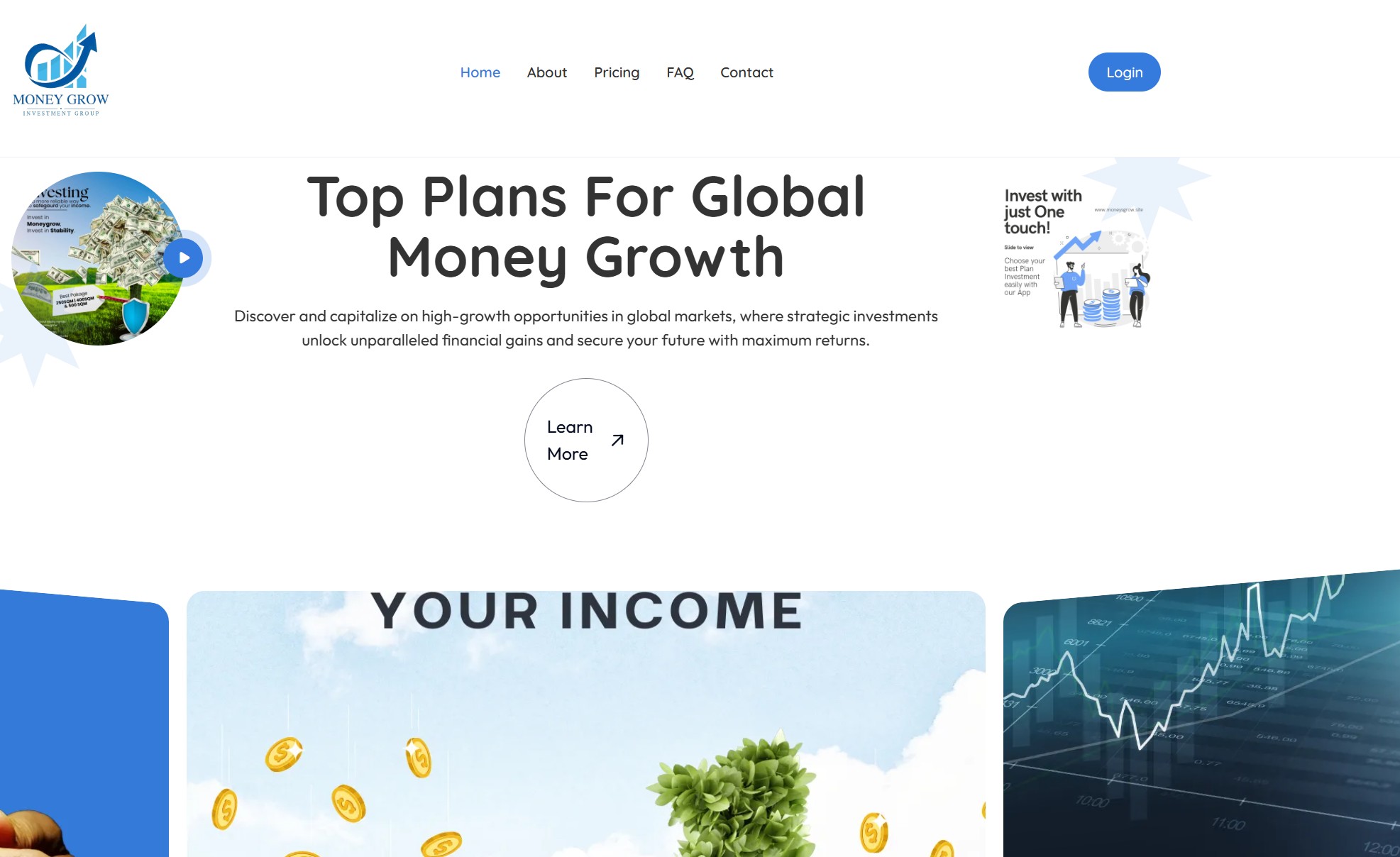 Мы решили разобраться, что же на самом деле стоит за красивой витриной. И вот что узнали. Прежде всего, сайт — moneysgrow.site — давайте скажем честно, выглядит откровенно слабо. Все собрано на каком-то уже сто раз использованном шаблоне. Дизайн будто списан с других лжеброкеров. Сменили только логотип, чуть подправили цвета — и вперед, в бой за доверчивых пользователей. С первого взгляда может и не настораживает, но как только начинаешь копать глубже — вылезают одни и те же старые схемы.