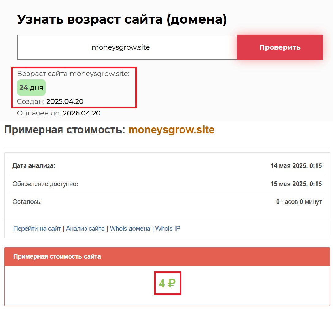 И если вы думаете, что перед вами опытная компания с годами работы — спешим вас разочаровать. Да, нам рассказывают о работе с 2020 года. Но это ничего не значит. Почему? Потому что активность проекта начинается лишь 24 дня назад, то есть с 20 апреля 2025 года, что подтверждается техническими данными. А это — максимум пара недель в строю. Неужели за такое время можно заслужить доверие инвесторов? Вряд ли.