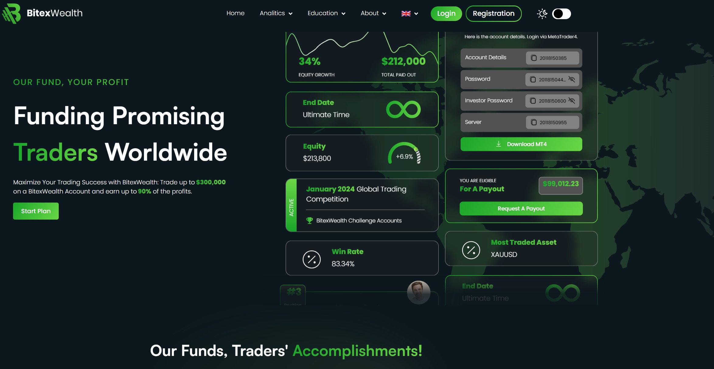 “Финансирование успешных трейдеров по всему миру!» — примерно так начинается история с BitexWealth (bitxwealth.com). Но за обещаниями кроется банальный обман, замаскированный под инвестиционную платформу. Казалось бы, все серьезно — сайт, интерфейс, уверенные формулировки. Но стоит копнуть — и становится ясно: перед вами классический лохотрон, который никого финансировать не собирается, он живет за счет ваших пополнений.