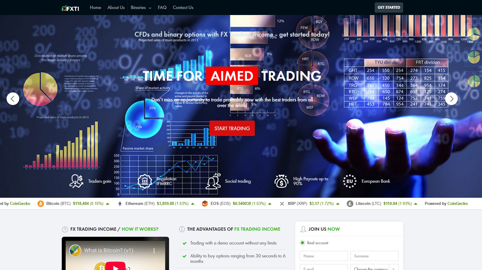 “CFD и бинарные опционы с FX Trading Income — начните сегодня!!” — именно так начинает привлекать внимание платформа FX Trading Income (fxtradeincome.pro). Все выглядит представительно: красивые баннеры, обещания высокого дохода, безопасной торговли. Но если копнуть — окажется, что за всем этим скрывается очередной фейк. Доверие вытягивают обещаниями, результат — потеря средств.