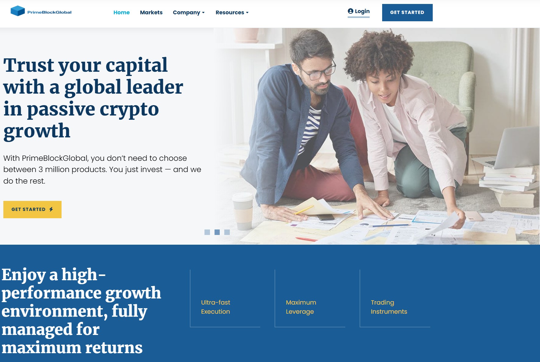 С каждым днем в сети появляется все больше псевдоброкеров, замаскированных под “инвестиционные платформы нового поколения”. На этот раз мы изучили проект с громким названием PrimeBlockGlobal (primeblockglobal.com). Их слоган звучит как: “Наслаждайтесь высокопроизводительной средой роста, полностью управляемой для достижения максимальной выгоды”. А дальше классика жанра — шаблонные фразы, красивые графики и пустые обещания. “Присоединяйтесь к тысячам тех, кто доверяет нашей безопасной системе” — такая надпись встречает нас на главной странице. Звучит убедительно? Только на первый взгляд.