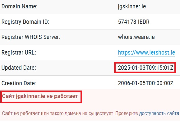 Чтобы убедиться в сомнительности данного проекта, можно воспользоваться сервисом Whois, который сразу показывает, что возраст проекта минимален — пусть домен и работает с 2006 года, его активное использование началось лишь с 3 января 2025., а информация о владельцах скрыта. Это все — стандартная схема обмана, ведь мошенники не заинтересованы в том, чтобы клиенты могли узнать о них больше.