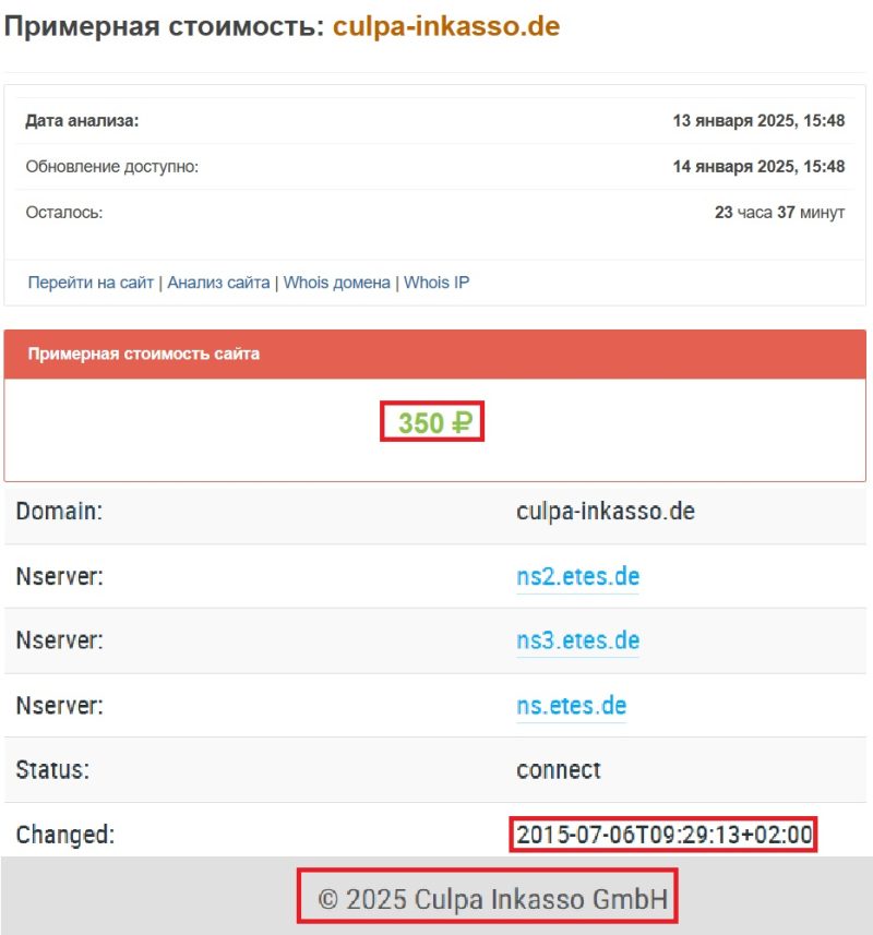Проверка сторонними сервисами показала также несколько интересных факторов. Во-первых, сам сайт был обновлен в июле 2015 года, но на самом деле мошенники купили его намного позже, просто скрыли информацию. При этом на самой странице указывается, что зарегистрирована она якобы с 2025 года.