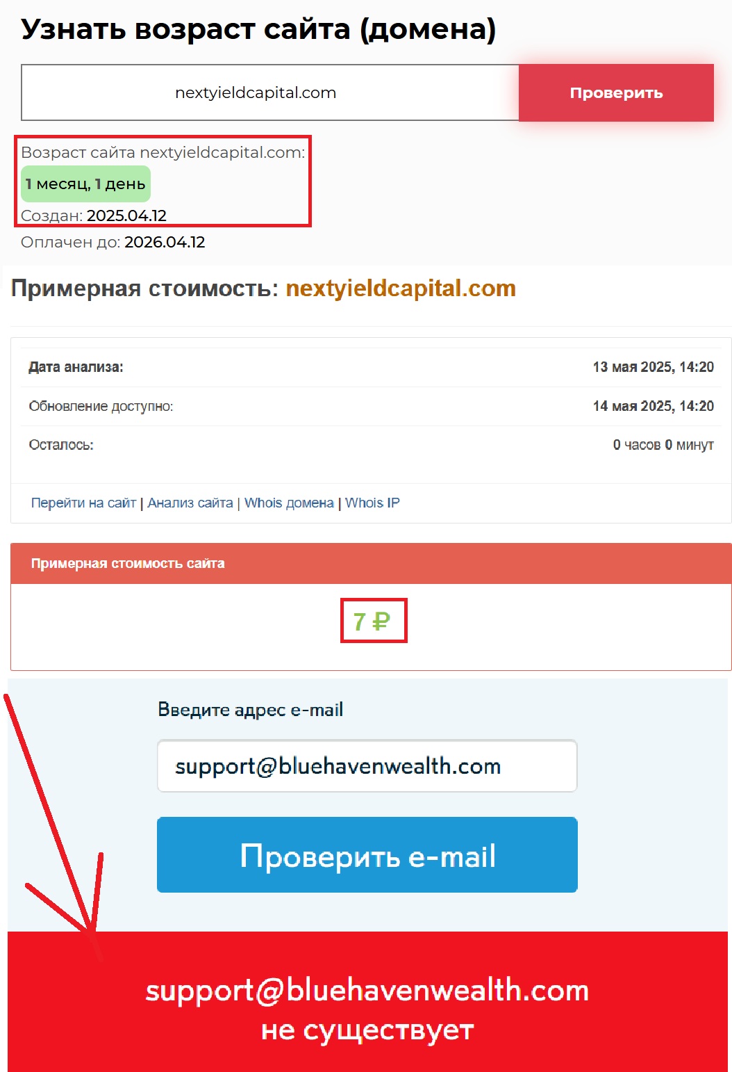 Теперь о контактной информации. Да, на сайте указаны и электронная почта support@bluehavenwealth.com и даже адрес 167-169 Great Portland Street, Fifth Floor, London, England, W1W 5PF. Звучит солидно. Только вот все эти данные оказались липовыми. Проверка показала, что ни по одному из каналов связаться с представителями Next Yield Capital невозможно. Почта молчит, адрес не существует.