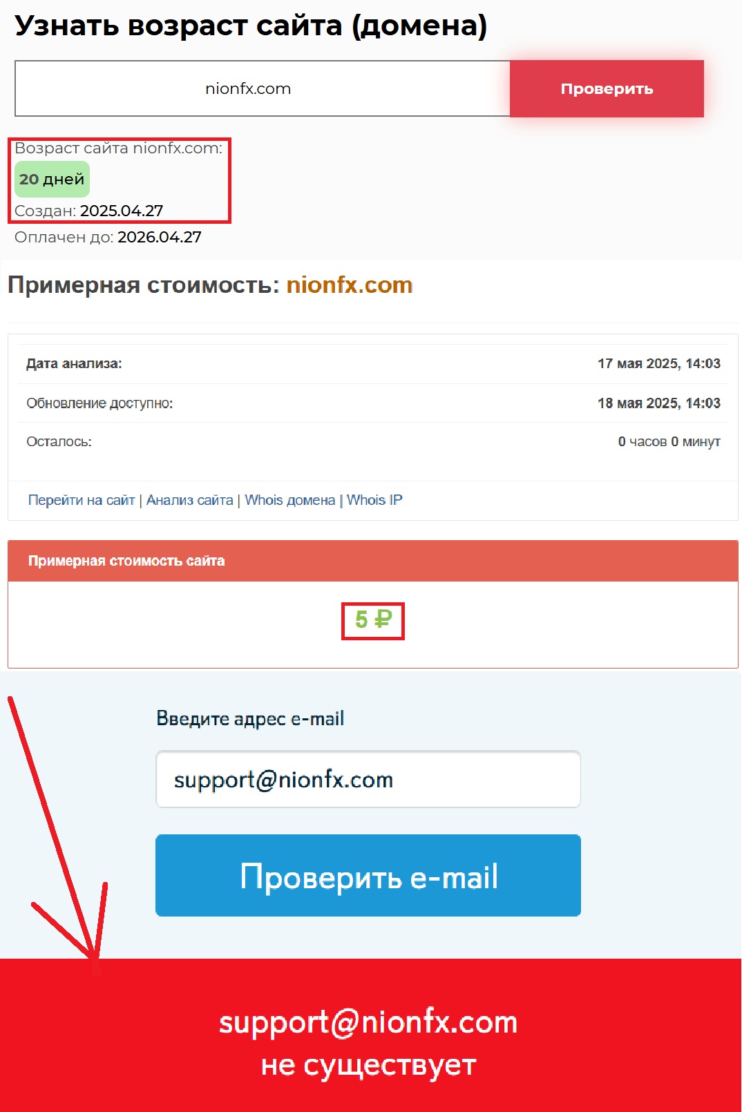 Да и сколько они работают, вы в курсе? Всего-то 20 дней, то есть проект зарегистрирован в интернете 27 апреля 2025 года. Вы бы доверили свои деньги фирме, которая вчера только появилась в сети? Которая не имеет даже подтвержденного юридического адреса? Вряд ли. А ведь речь идет не о покупке кофе, а об инвестициях — о реальных деньгах, часто накопленных с трудом. Да и стоимость этой клоунады составляет не более пяти рублей, что крайне мало для серьезной компании.