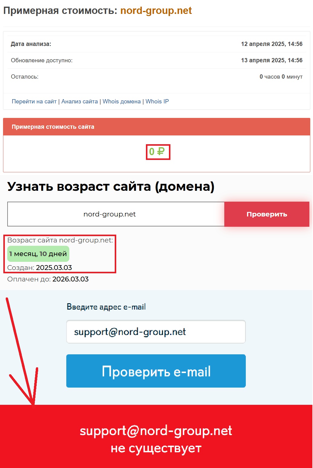 Кстати, если вас убедили в том, что Nord Group работает уже давно и стабильно — не верьте. Мы проверили данные через сторонние сервисы, и вот вам голый факт: сайту чуть больше месяца. Серьезно? Контора, существующая с 3 марта 2025 года что-то будет нам рассказывать о многолетнем опыте? Ну правда, смешно. Хотя нет, скорее — печально. Цены на такие сайты? Смехотворные. Стоимость проекта — ровно 0 рублей. Такие суммы говорят только об одном: никто не собирается платить клиентам, все сделано исключительно ради сбора денег.