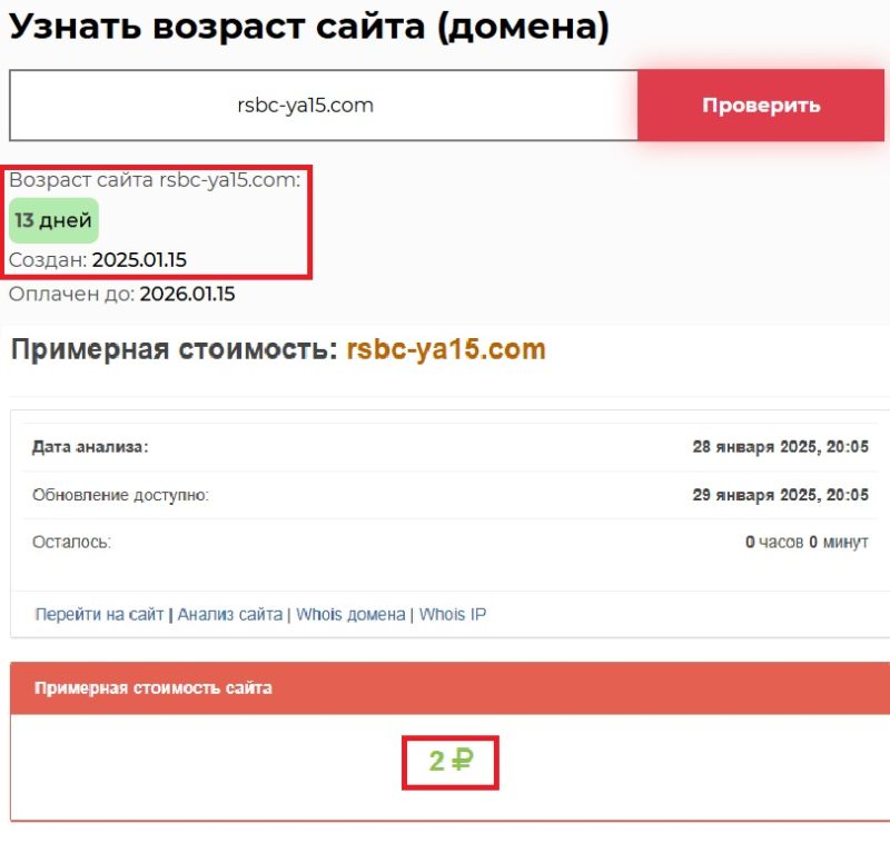Проверка сторонними сервисами, такими как Seolik и Whois, показала, что возраст мошеннического проекта составляет всего несколько месяцев. Домен был зарегистрирован 15 января 2025 года, хотя на главной странице говорится о многолетней истории успеха. Еще один тревожный момент – стоимость сайта, которая равна ничтожным двум рублям. Это четко указывает на мошеннический характер платформы, так как серьезные финансовые компании вкладывают значительные средства в свои творения.