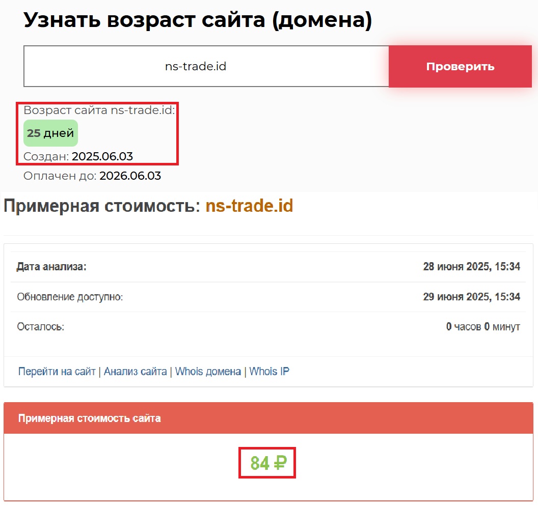 А если присмотреться к мелочам — тем самым деталям, которые чаще всего упускают из виду — все встает на свои места. Стоимость сайта, по оценке сторонних сервисов, составляет всего 84 рубля. Подумайте, как может ресурс, на котором якобы торгуются активы на миллионы, стоить подобную сумму? Это уже само по себе выглядит абсурдно. Мы настоятельно советуем вам быть осторожными. Сегодня мошенники умело играют на эмоциях — жажде легких денег, желании компенсировать потери, стремлении быстрее выйти в плюс.