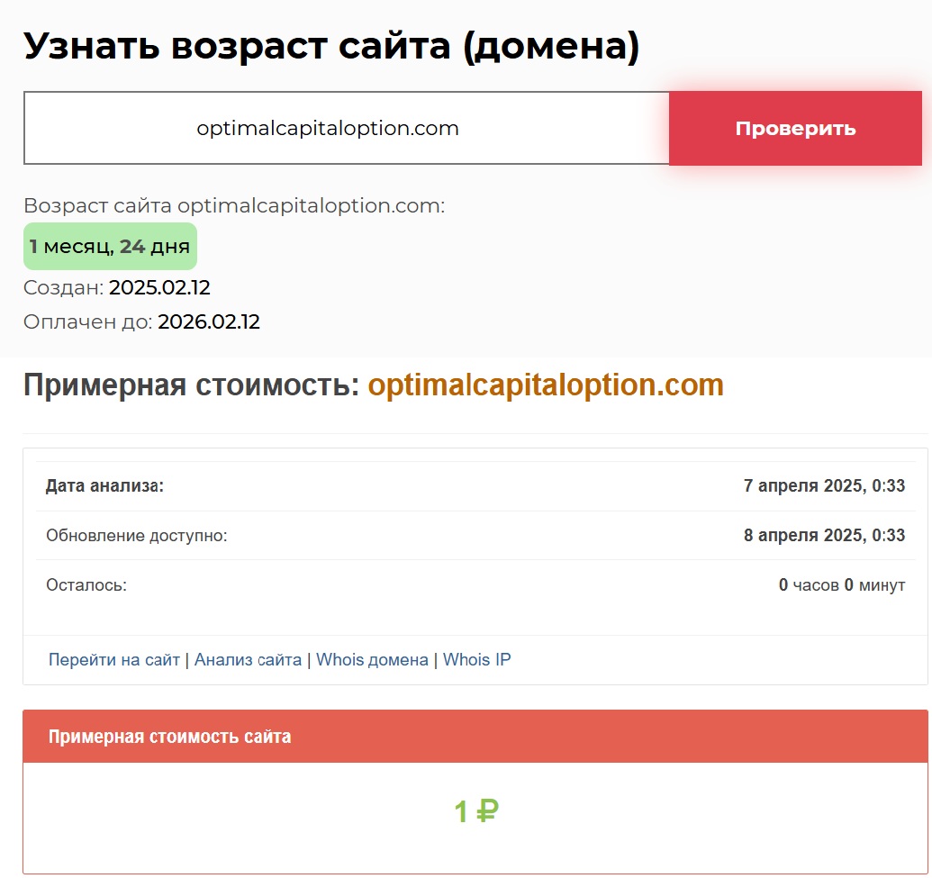 Только вот на деле все совсем не так. Даже близко. Как только копнешь поглубже, весь этот фасад начинает осыпаться. Пожалуй, начнем с самого очевидного — сайта. Вот серьезно, вы только гляньте на него: optimalcapitaloption.com — это даже не веб-ресурс, это какой-то шаблон, собранный на скорую руку. Такое чувство, что его делали в спешке. Да и вообще, если уж честно, он практически ничем не отличается от десятков других лжеброкерских платформ. Все то же: поменяли логотип, вставили новое название — и пожалуйста, запускай обман.