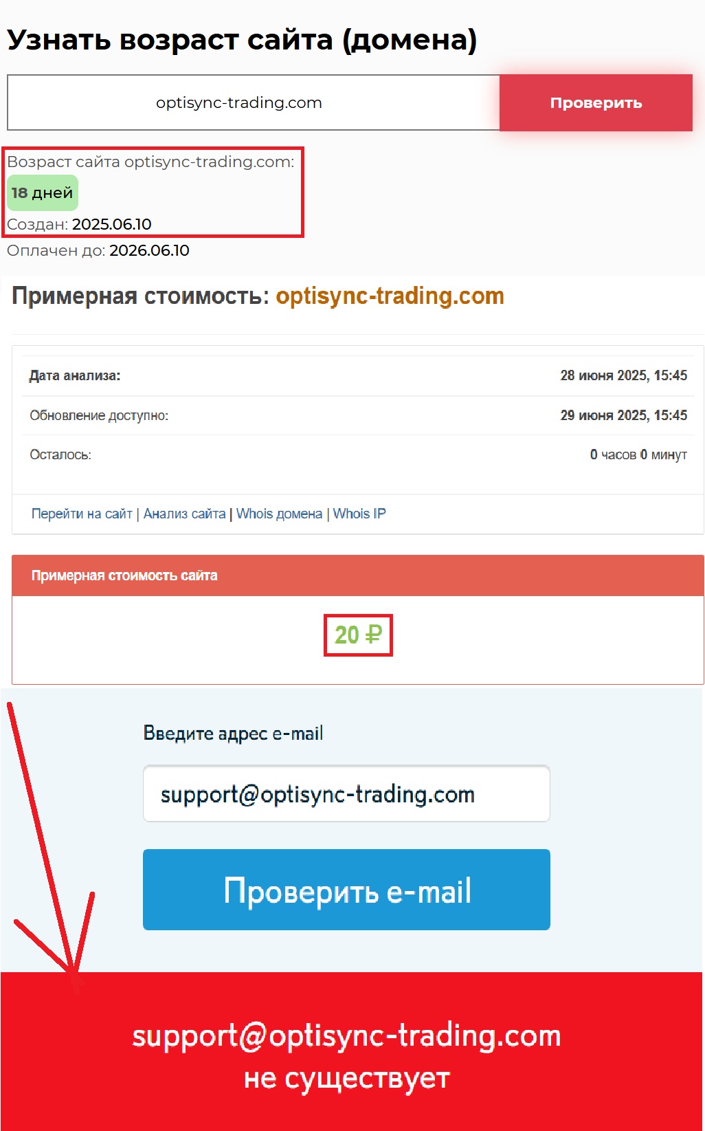 Что касается контактной информации, то здесь все стандартно для аферистов: неработающая почта support@optisync-trading.com, фальшивые номера телефонов +15123870190, +442035197495. Напишите — не ответят. Позвоните — не дозвонитесь.