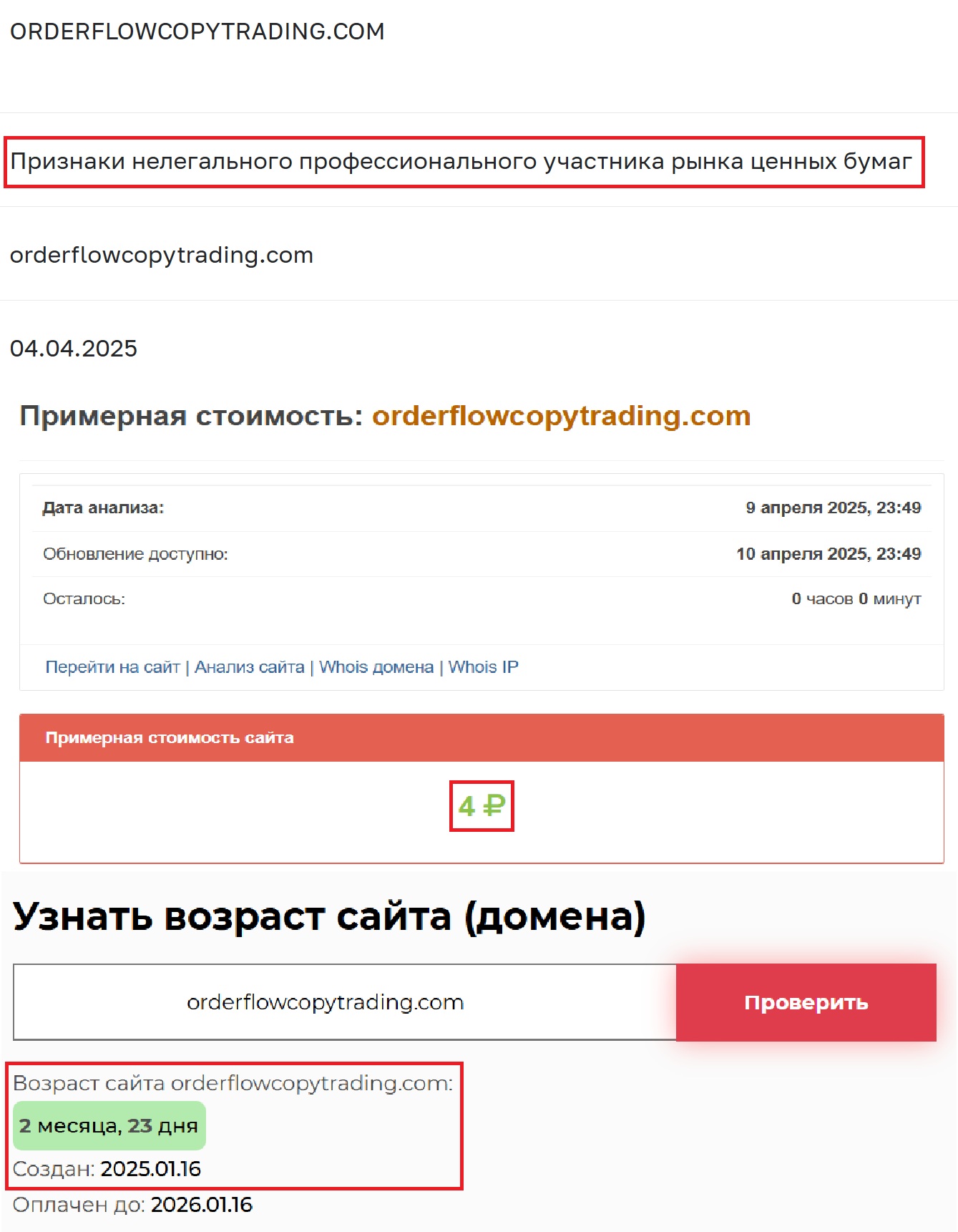 Знаете, мы не из тех, кто судит по внешнему виду. Но возраст проекта, между прочим, всего пару месяцев. 2 месяца и 23 дня, если быть точными. Это легко проверяется через тот же Whois. А теперь просто представьте: серьезный финансовый сервис с двухмесячной историей, который при этом пытается внушить, будто работает на рынке много лет. Смешно? Нам — тоже. Особенно если вспомнить, что сайт, по данным Seolik, стоит целых 4 рубля. Это не образное выражение. Возникает логичный вопрос — а кому вообще в голову придет доверять свои деньги такому «гиганту»?