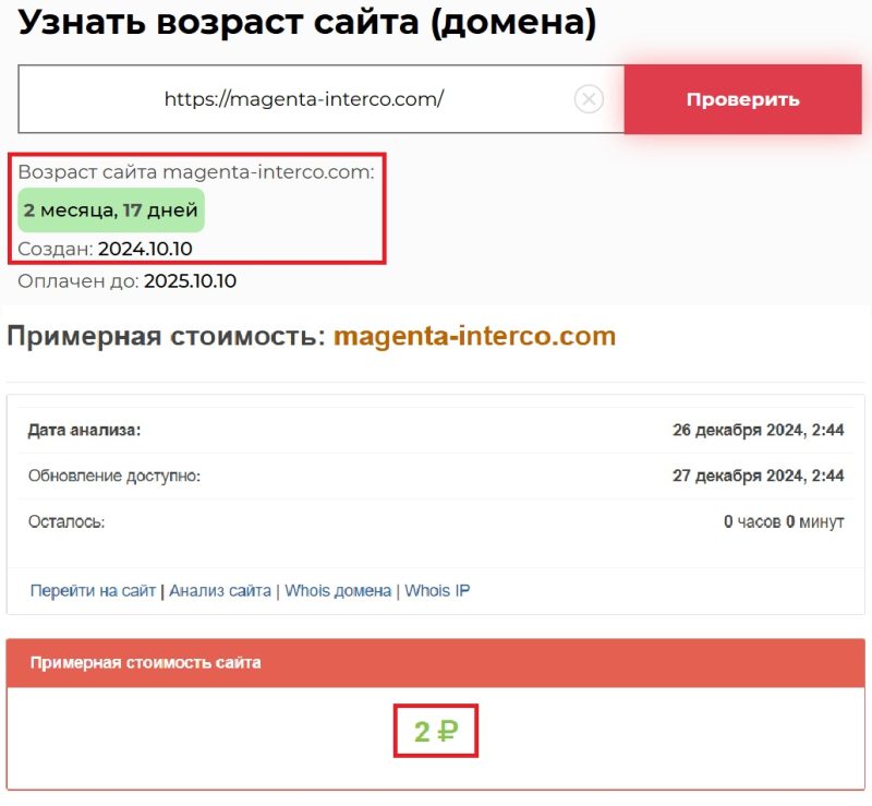 Контора MAGENTA INTERCO LIMITED получает контактные данные обманутых клиентов и потом активно спамит на слитые номера телефонов или электронные почты, предлагая свои услуги. К сожалению многие ведутся. Основной метод общения — форма обратной связи. Как только клиент переходит на страницу лжеюриста, он вводит свои данные. Потом мошенники могут звонить вам в любой момент с одноразовых номеров, а вы перезвонить не сможете. MAGENTA INTERCO LIMITED появился в сети всего лишь 2 месяца и 17 дней назад, то есть 10 октября 2024 года. Это явно слишком маленький срок для легальной компании. Также обратите внимание на тот факт, что стоимость веб-ресурса составляет ровно два рубля. О лицензии и регистрации не сказано ни слова, так что рекомендуется держаться подальше от этого фальшивого юриста.