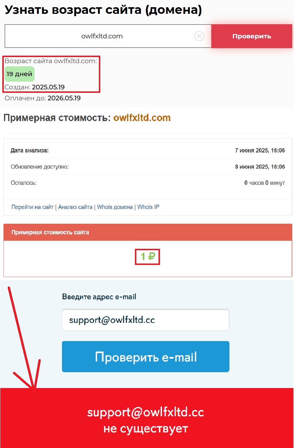 Не стоит искать у этой конторы лицензии, документов или хотя бы намека на легальную регистрацию. Возраст проекта — меньше трех недель. Вы понимаете, насколько это тревожный сигнал? Такие «брокеры» живут недолго: соберут деньги и исчезают. Стоимость самого сайта — буквально один рубль. Как вы думаете, станет ли надежный финансовый посредник строить бизнес на такой основе? Контактные данные, указанные на сайте, вызывают лишь усмешку.