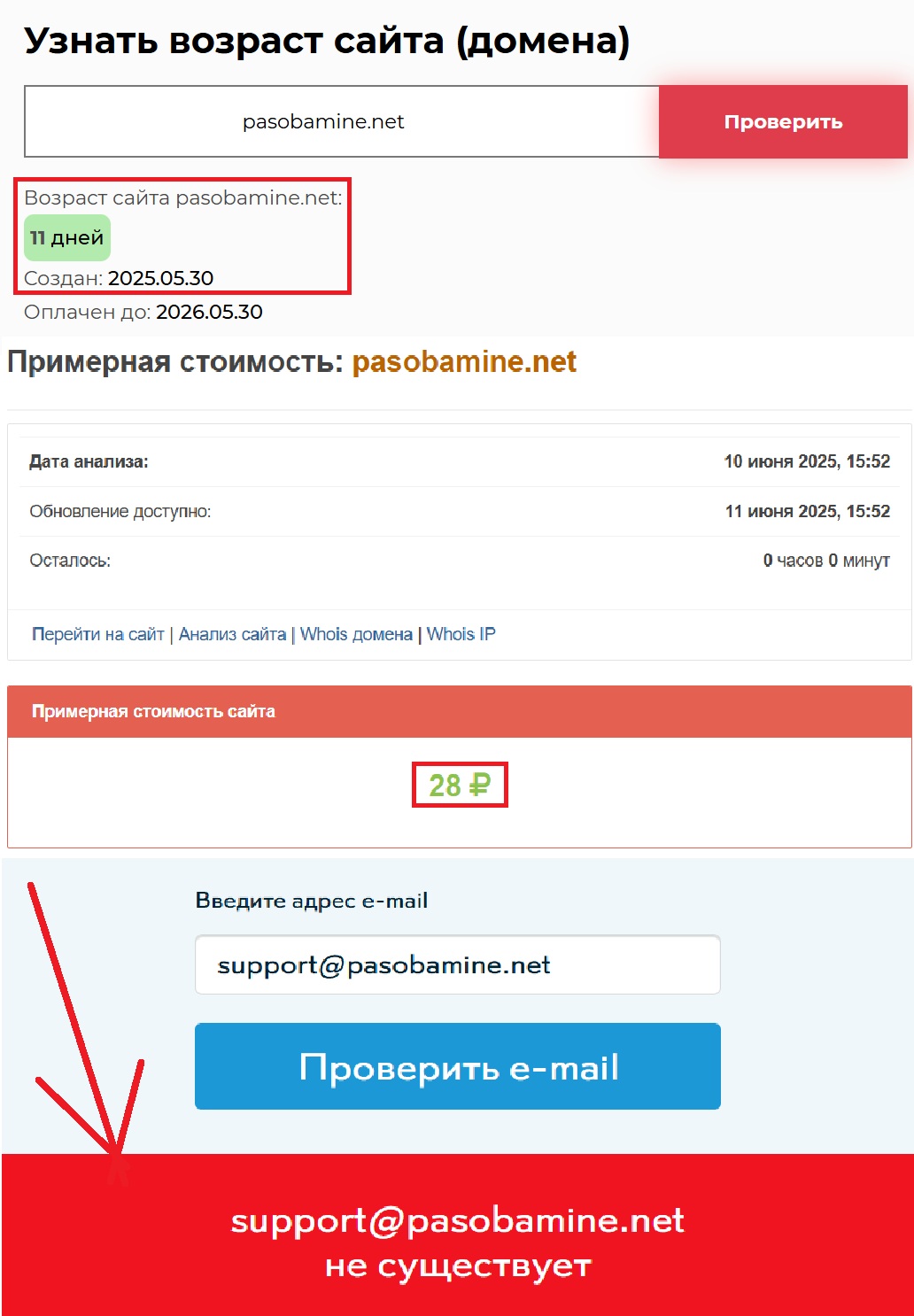 По данным независимых ресурсов, сайт существует всего 11 дней. И при этом гордо заявляет о четырехлетнем опыте? Как так? Тут либо изобретен новый способ искажения времени, либо нас просто держат за дураков. Ответ, боимся, очевиден. Особенно если взглянуть на стоимость домена — 28 рублей. Вы действительно верите, что серьезный брокер, с многомиллионными оборотами, будет работать на площадке, которая не стоит буквально ничего?