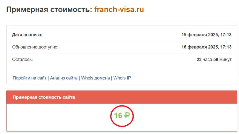 Сайт компании обладает признаками лендинга-одностраничника, что вызывает сомнения в долгосрочности конторы. Отметим и то, что подозрительно выглядит низкая примерная стоимость площадки (всего 16 рублей).