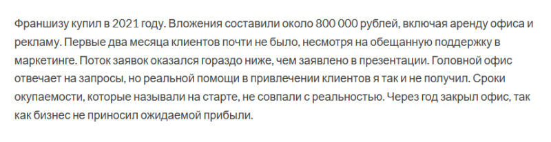 - высокий паушальный взнос без четкого обоснования окупаемости;
