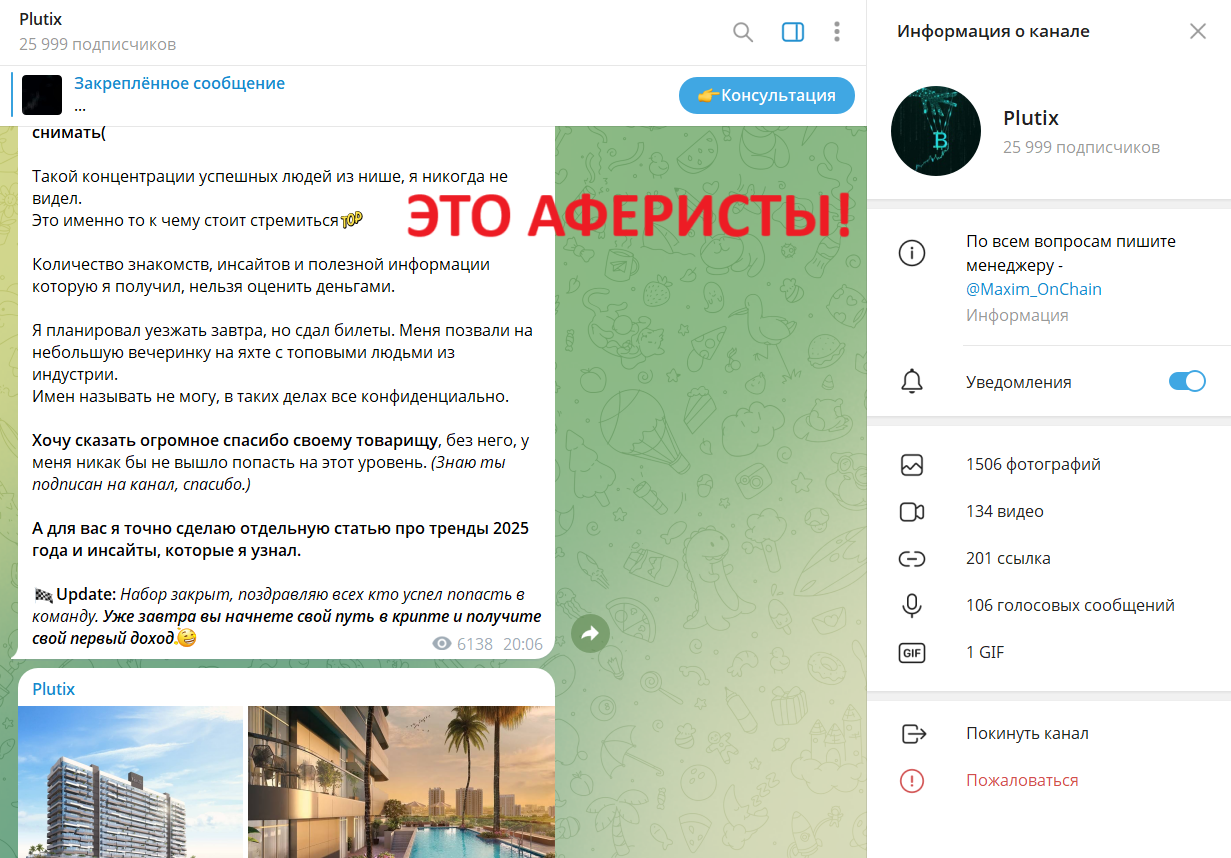 Недобросовестный характер Plutix также подтверждает отсутствие прозрачности в плане переводов. Листая ленту канала, вы не сможете найти методы ввода и вывода денег (что также является фактором риска).