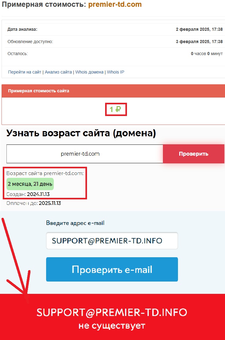 Но факты говорят об обратном — платформа нагло ворует деньги у новичков-трейдеров и неопытных инвесторов, блокируя их аккаунты сразу после внесения депозита или требуя оплату дополнительных комиссий. В конечном итоге лжеброкер просто перестает выходить на связь, оставляя вкладчиков без вложенных средств. Главное внимание должно быть акцентировано на площадке premier-td.com. Перед нами шаблонный веб-ресурс, созданный на базе стандартного макета, который аферисты используют раз за разом.