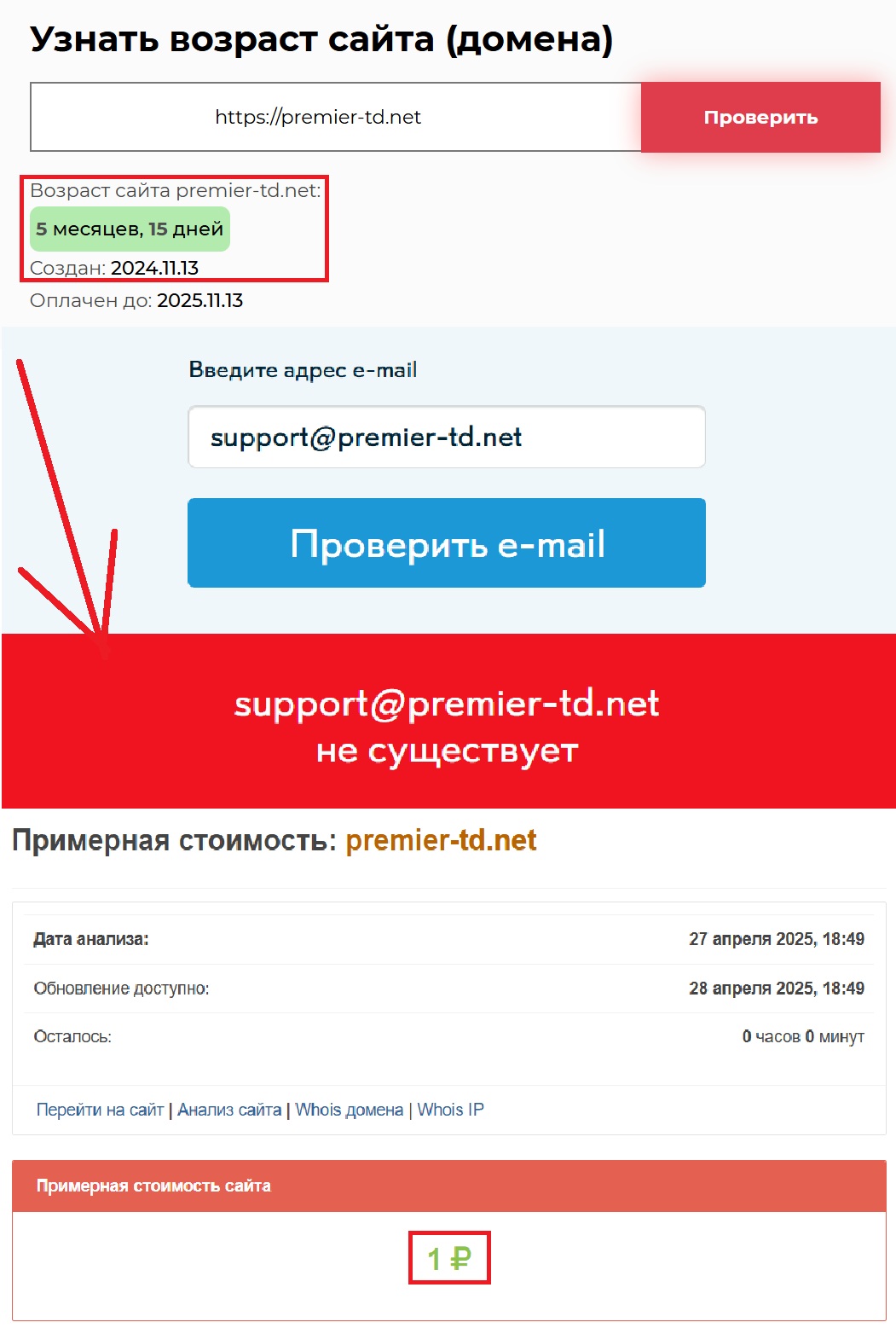 А теперь к фактам. Домен, на котором размещен этот «инвестиционный гигант», зарегистрирован всего 5 месяцев и 15 дней назад. Буквально вчера по меркам нормального финансового рынка. И знаете что еще? Его стоимость — ровно один рубль. Один! Даже не смешно. Все это больше похоже на шутку, чем на серьезный проект, которому кто-то в здравом уме доверил бы свои кровные.