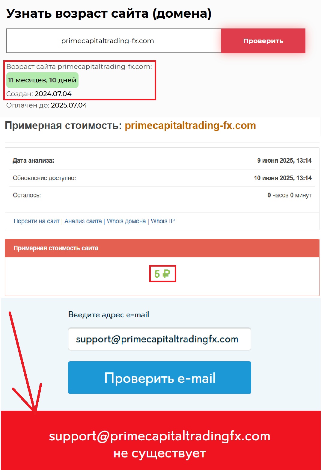 А теперь самое интересное — возраст домена. Нам рассказывают о команде экспертов, которая с 2020 года начал свою деятельность на благо пользователей, а по итогу сам сайт работает всего 11 месяцев и 10 дней, что ничтожно мало для легальной компании. И знаете, сколько стоит эта подделка? Пять рублей. Почти бесплатный шаблон, липовая история — и полное отсутствие даже намека на настоящую юридическую основу. Как вы понимаете, на этом фоне говорить о каком-то доверии просто не приходится. Мы настоятельно рекомендуем вам обходить Prime Capital Trading Fx стороной. Не дайте себя обмануть. Сейчас, когда финансовые аферы набирают обороты, особенно важно быть на шаг впереди.