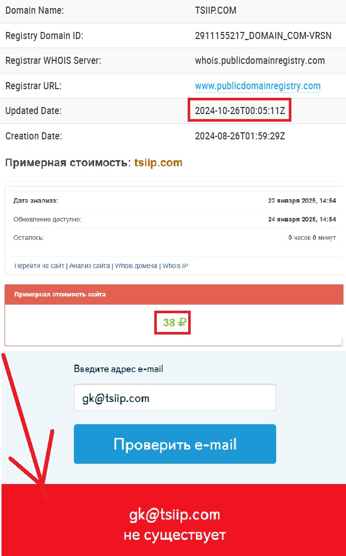 Мы проверили площадку при помощи сторонних сервисов и обнаружили что контора работает не так давно. Проект открылся 26 октября 2024 года, что ничтожно мало для нормальной площадки. Стоимость в 38 рублей показала, что Tsiip не имеет ничего общего с реальными правовыми проектами. Аферисты рассчитывают на то, что они возьмут с вас комиссию и потом быстро закроются, прихватив с собой десятки тысяч рублей. Кстати, первые негативные комментарии уже начали появляться.