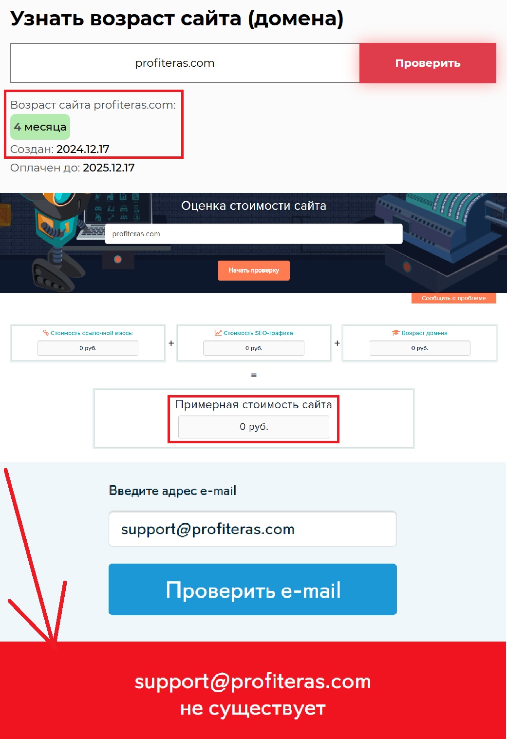 Контактная информация — это вообще отдельная история. Указана электронная почта support@profiteras.com. Мы проверили — она фейковая. По адресу никто не работает, письма уходят в никуда. Максимум, на что можно рассчитывать — это форма обратной связи на сайте. Но ответит ли вам кто-то? Да бросьте. Мы все знаем, что нет. Эти формы сделаны для вида, чтобы создать иллюзию коммуникации. Мол, “пишите, мы рядом”. А на деле — пустота.