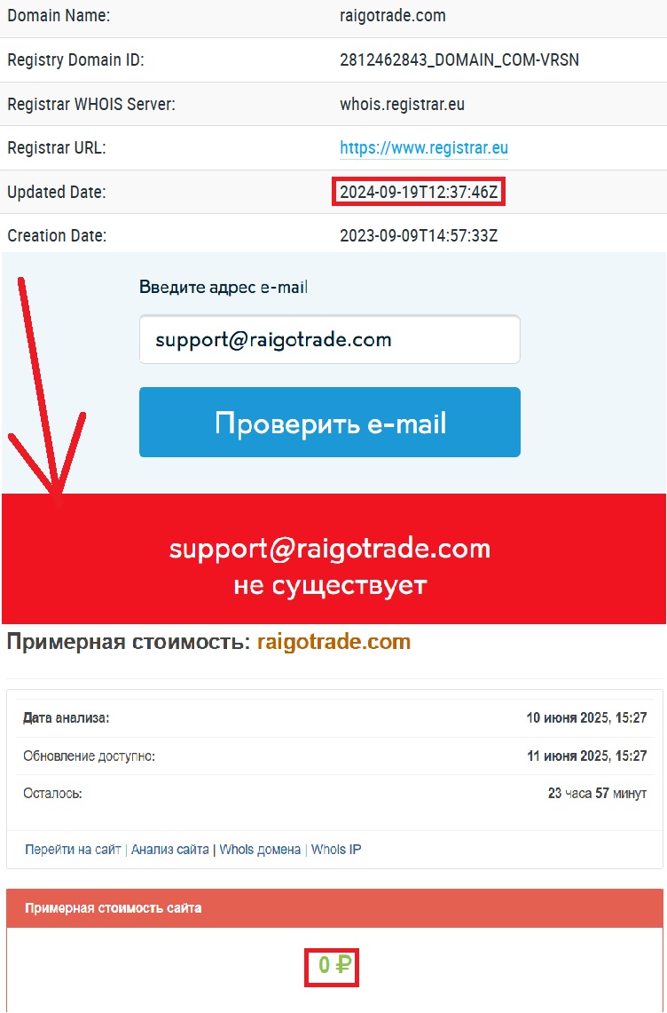 Юридическая часть тоже вызывает вопросы, вернее — дает на них однозначные ответы. Документов нет. Лицензий нет. Никаких подтверждений регистрации — тоже нет. Связаться с представителями — отдельная история. Телефон +1 (901) 235-3342, почтовый ящик support@raigotrade.com — фейковый. Это создает лишь иллюзию общения. Как только человек переводит деньги — иллюзия развеивается, вместе с ней исчезают и «менеджеры», и поддержка.