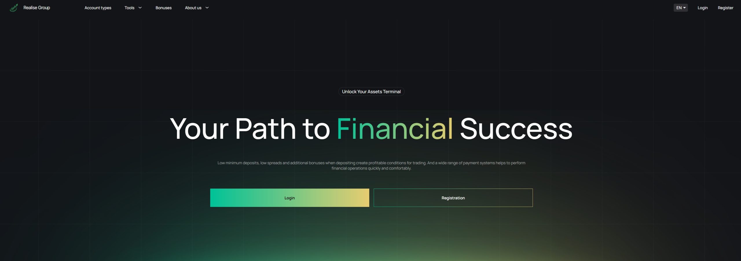 Кажется, мошенники работают без выходных. Каждый день появляется что-то «новое», и каждый раз — одно и то же. Просто берется шаблон. Знакомый, банальный, тысячу раз уже использованный. Меняется логотип, слегка перекрашивается дизайн, дописываются пару строк о «надежности» — и готова новая ловушка для доверчивых пользователей. На этот раз мы имеем дело с проектом под названием Realise Group, и, признаться, все здесь до ужаса предсказуемо.