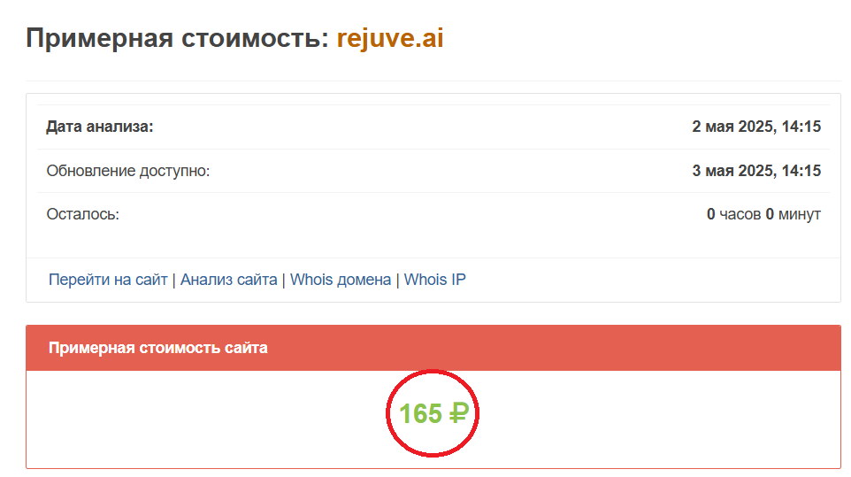 Не внушают доверия и низкая примерная стоимость домена Rejuve.ai (что характерно для многих мошеннических ресурсов), проблемная связь с представителями сервиса. Из контактных данных предложены лишь физический адрес и электронная почта. Судя по отзывам в сети, на отправленные письма дождаться ответа невозможно.