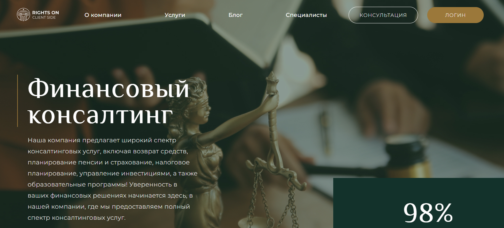 Представители компании Rights On предлагают людям консалтинговые услуги в области финансов, включая помощь в возврате средств и инвестиционное планирование. Это достаточно актуальные предложения, как на наше время, поскольку в сети нынче развелось немало мошенников, нагло грабящих доверчивых пользователей. И все бы ничего, если бы авторами упомянутой конторы не были все те же аферисты! В Интернете есть масса негативных отзывов, подтверждающих жульнический характер этого проекта.