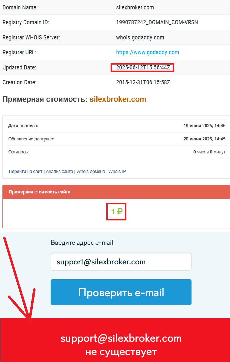 Когда мы изучили историю домена, выяснилось, что весь проект появился буквально пару дней назад — 12 июня 2025 года. То есть никакого «многолетнего опыта» речи даже близко быть не может. Это просто фикция. Более того, стоимость самого сайта оказалась… один рубль. Сложно поверить, что уважающий себя брокер, имеющий якобы выходы на глобальные финансовые рынки, станет запускать свое детище с таким мизерным вложением в инфраструктуру. Это говорит само за себя.