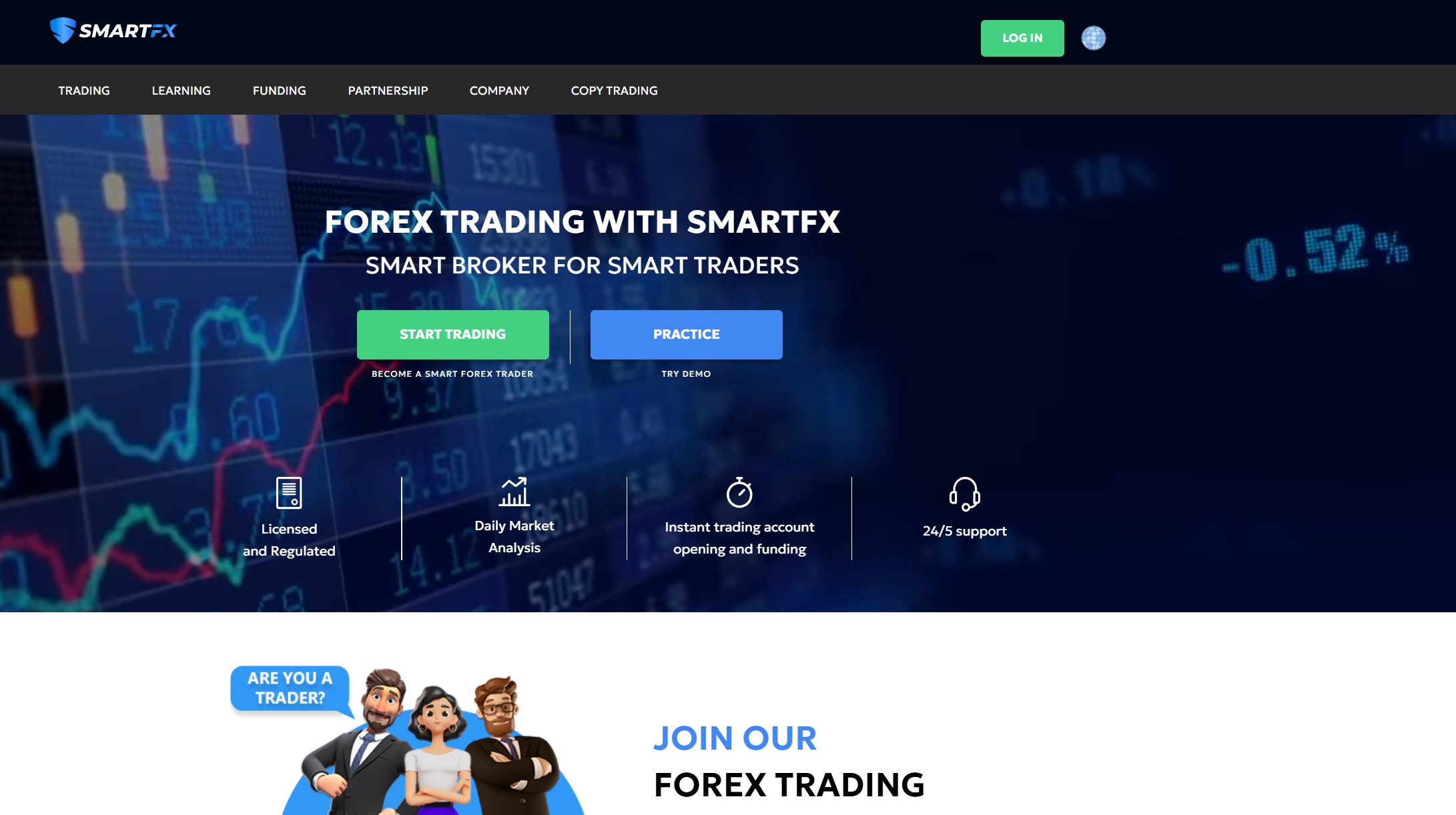 Открываем сайт smartfx.com — и сразу ловим дежавю. Все до боли знакомо: шаблонный дизайн, стандартные блоки, минимальный функционал, как будто перед нами не платформа для торговли, а демоверсия лендинга из 2015-го. Почему так? Все просто: аферисты не утруждаются созданием чего-то нового, ведь их цель — не создать продукт, а побыстрее собрать деньги и скрыться. Да и смысла вкладываться нет — проект все равно не проживет и полугода.